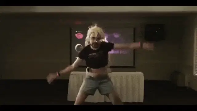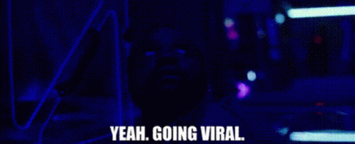 a man with a beard is standing in a dark room and says `` yeah , going viral . ''