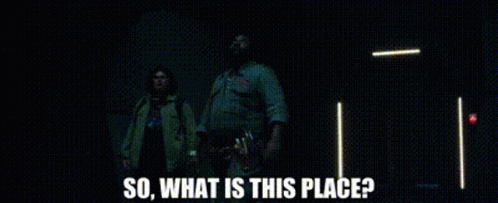 Madison Russell and a companion in a dark, mysterious location, asking 'So, what is this place?'