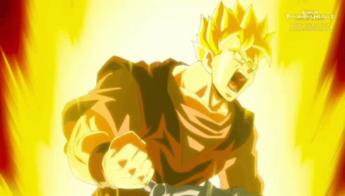 Future Gohan transforms into Super Saiyan, unleashing immense power in Super Dragon Ball Heroes.