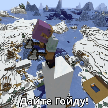 A Minecraft character, possibly Kratos, stands on a tall pillar in a snowy landscape, with the phrase "Give Goyda!" displayed.
