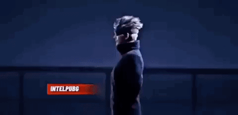 a man with white hair is giving the middle finger while standing in front of a purple and blue background .