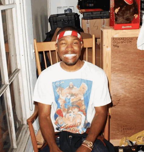 Gokista Juanjo Bona, also known as Frank Ocean, smiling broadly while wearing a Capcom Street Fighter shirt.