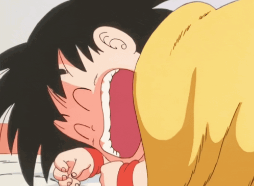 Kid Goku from Dragon Ball is seen yawning widely, looking sleepy and ready to fall asleep.
