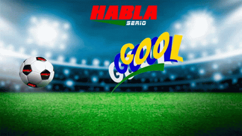 A soccer ball on a field with the word 'cool' written on it, reflecting the phrase 'Gol Habla Serio'.