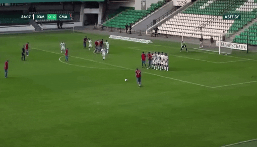 "Гомель" - "Смолевичи". Крутой розыгрыш штрафного и гол Сазановича