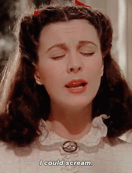 Vivien Leigh as Scarlett O'Hara in Gone With The Wind, expressing frustration with the iconic line 'I could scream.'