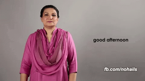 A woman demonstrates 'Good Afternoon' using Pakistan Sign Language in a clear, educational clip.