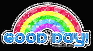 a colorful rainbow with the words good day written below it