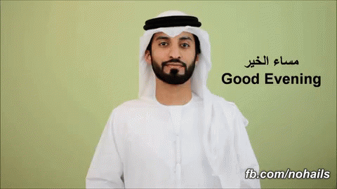 Nohails demonstrates how to say 'Good Evening' in Arabic and English using sign language.