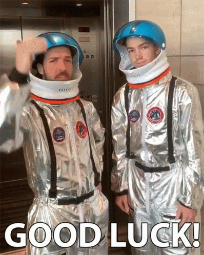 Two men in astronaut suits wish good luck before entering an elevator. Features Spacestation Gaming and Shonduras.