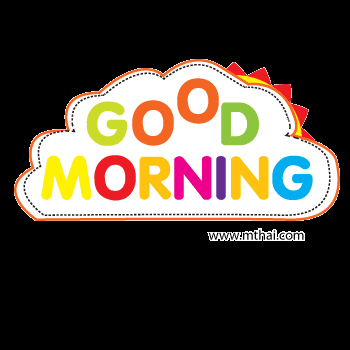 a sign that says good morning with a cloud and sun