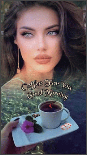A beautiful woman's face accompanies a 'Coffee For You Good Morning' message with a cup of coffee.