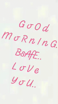 Animated 'Good morning. Bsafe.. Love you..' message with sparkling stars on a white background.
