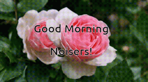 Two beautiful pink and white roses with a 'Good Morning Noisers!' message, perfect for a morning greeting.