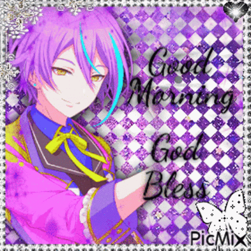 Rui Kamishiro from Project Sekai featured in a 'Good Morning God Bless' illustration.