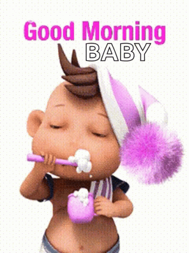 An animated baby character brushes its teeth, with 'Good Morning BABY' text displayed on screen.