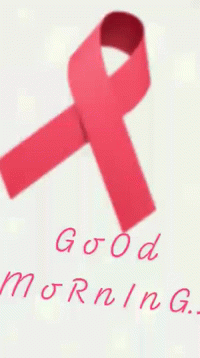 A vibrant pink awareness ribbon with a 'Good Morning' message.