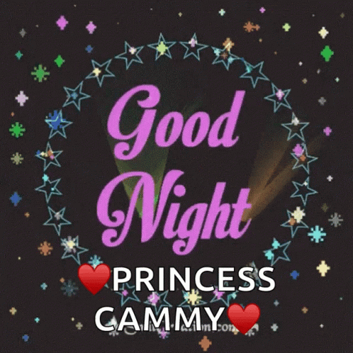 A heartfelt 'Good Night Princess Cammy' message with sparkling stars and decorative elements.