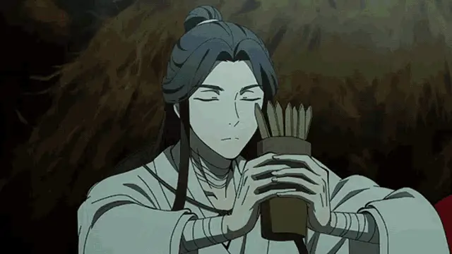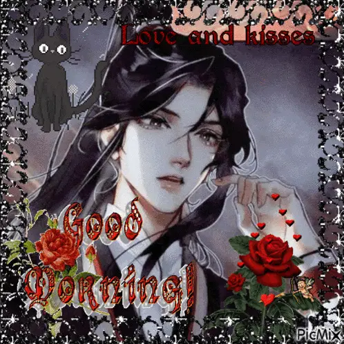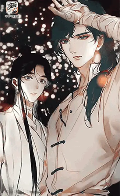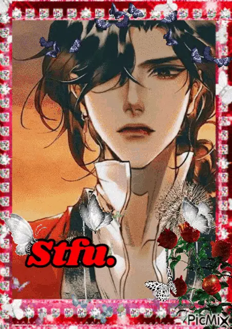 Hua Cheng and Xie Lian share a tender moment, surrounded by hearts and butterflies, wishing 'Natti Natti'.