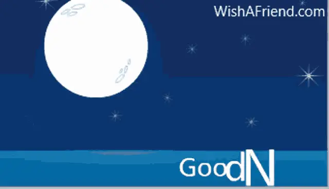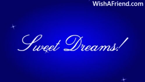 Animated good night message with 'Sweet Dreams!' text on a sparkling blue background from WishAFriend.com.