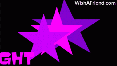 An animated graphic with purple and pink stars, displaying the message 'Good Night' and 'WishAFriend.com'.