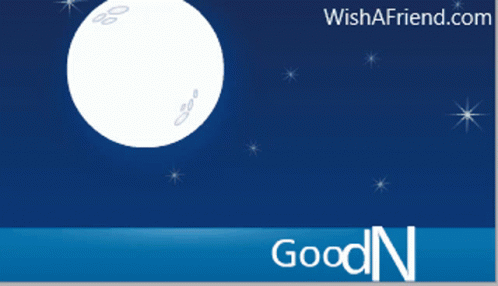A serene night scene with a full moon and twinkling stars, wishing a good night.