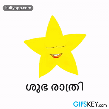A smiling yellow star with 'Good Night' in Malayalam, perfect for sending warm wishes.