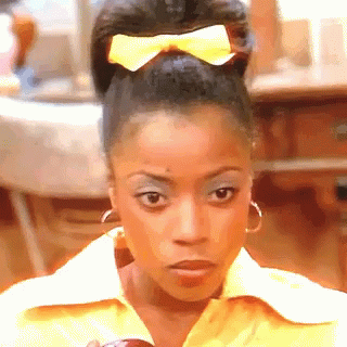 Thelma (Bern Nadette Stanis) from Good Times reacts with surprise and then a knowing smile.