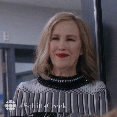 Catherine Ohara as Moira Rose from Schitt's Creek waves goodbye, blowing a flying kiss.