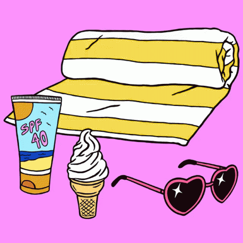 Transition from summer fun items like sunscreen and sunglasses to back-to-school supplies including notebooks and pencils.