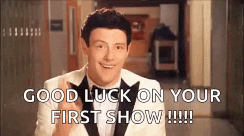 Cory Monteith as Finn Hudson from Glee gives a thumbs up, wishing good luck on a first show.