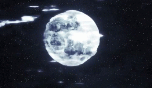 A luminous full moon shines brightly in a dark, star-filled night sky, creating a serene and reflective scene.