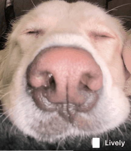Googz Pluto, the dog, with eyes closed, showing a close-up of its nose.