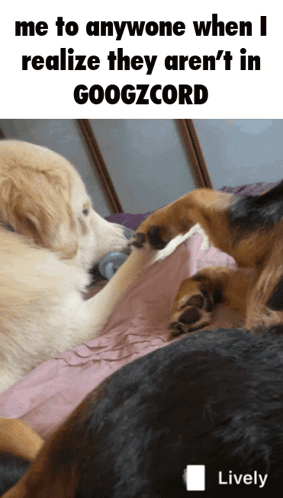 Two dogs on a bed, one gently 'slapping' the other, accompanied by the meme caption about GOOGZCORD.