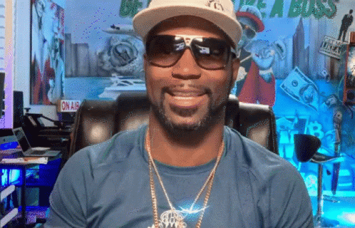 Caujuan Mayo, wearing a cap and sunglasses, smiles and sticks out his tongue with a 'GOT EM!' graphic.