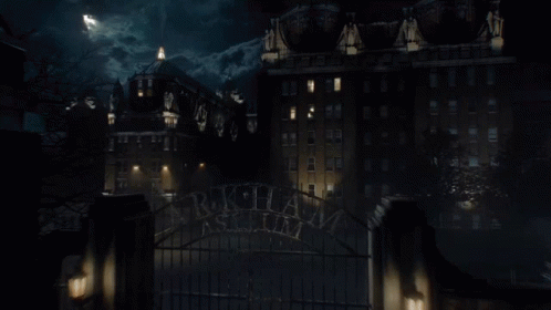 Nathaniel Barnes from Gotham in a dark, unsettling setting, with the Russian word 'ДАУН' (DAUN) appearing.
