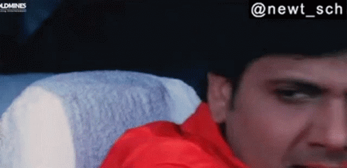 Govinda's face covered in lipstick after a kiss with Twinkle Khanna, making funny expressions.