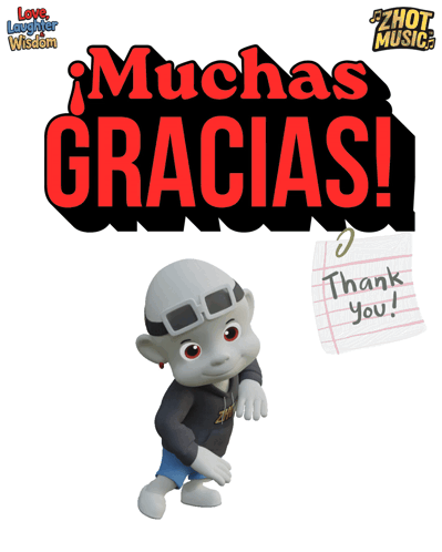 a cartoon character stands in front of a sign that says " muchas gracias "