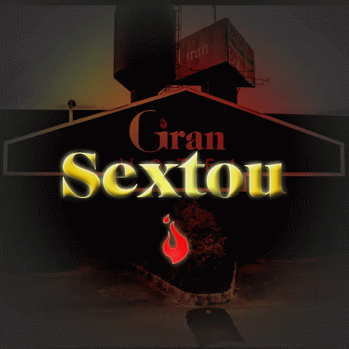 Animated neon logo for Gran Sextou, featuring a flame icon and glowing text against a blurred background.