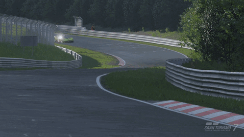 Experience the high-speed thrill of the Aston Martin Valkyrie hypercar racing on a track in Gran Turismo 7.