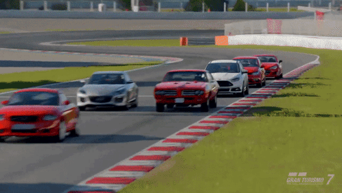 Experience the thrill of racing the classic Pontiac GTO The Judge in Gran Turismo 7 on a vibrant track.