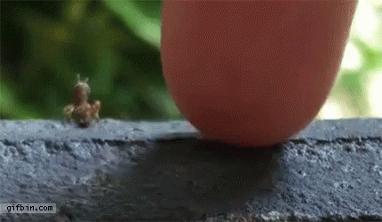 A tiny grasshopper appears to give a high five to a human finger on a ledge, a cute insect interaction.