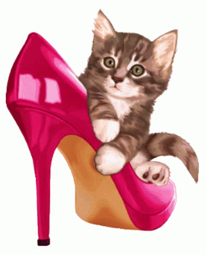 Adorable kitten peeking out of a vibrant pink high heel shoe, with 'Grazie' appearing on the side.