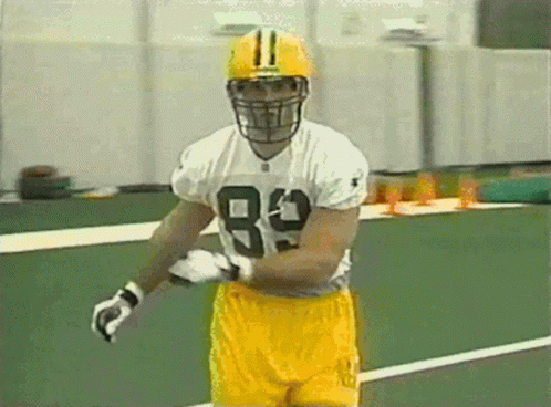 A Green Bay Packers player in jersey #89 stands on a field before the video fades to static.