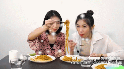 Gracia Jkt48 and Shani Jkt48 enjoying a delicious noodle mukbang on Greshan Tv.