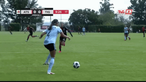 Greta Espinoza of Tigres Femenil skillfully dribbles the ball during a Liga MX Femenil match.