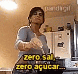 Gretchen in the kitchen, demonstrating a 'zero salt, zero sugar' concept while cooking and speaking.