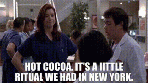 Addison Montgomery (Kate Walsh) discusses her 'hot cocoa ritual' from New York in a hospital scene from Grey's Anatomy.