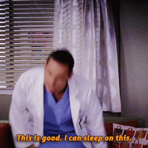 Alex Karev from Grey's Anatomy, played by Justin Chambers, says 'This is good. I can sleep on this' while on a couch.