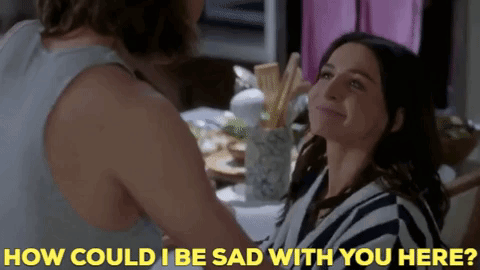 Amelia Shepherd from Grey's Anatomy asks, 'How could I be sad with you here?' in a heartfelt moment.
